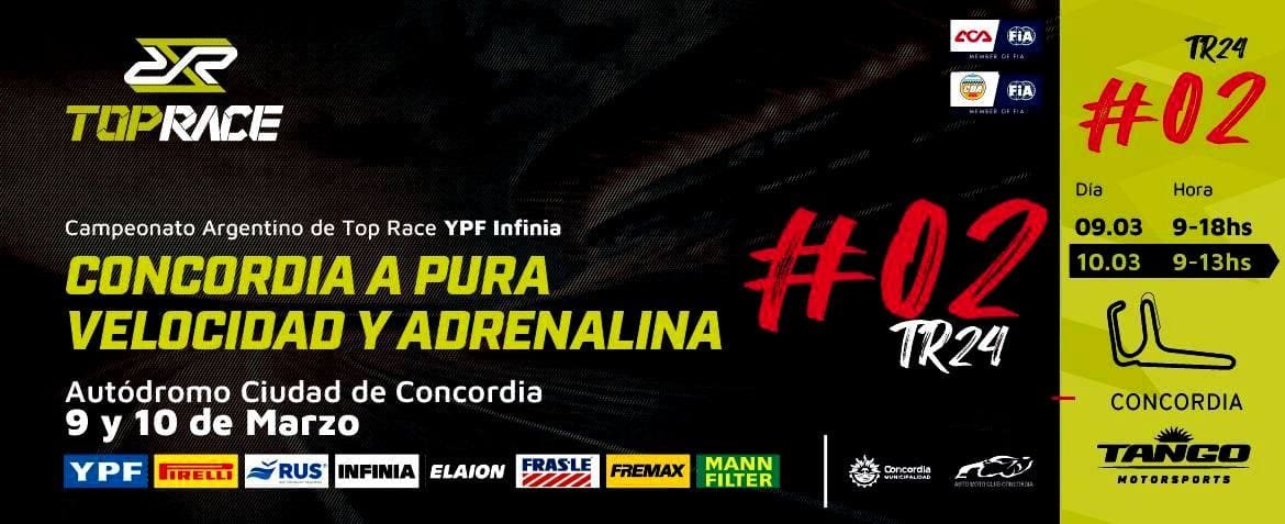 El 30º Campeonato Argentino de Top Race YPF Infinia tendrá continuidad el 9 y 10 de marzo en el Autódromo Ciudad de Concordia, provincia de Entre Ríos.