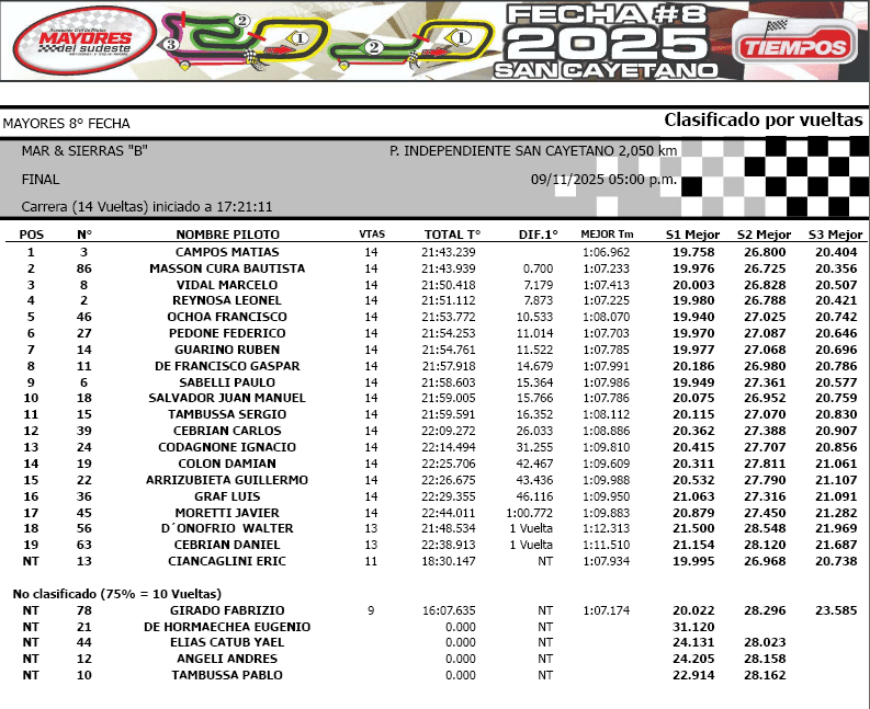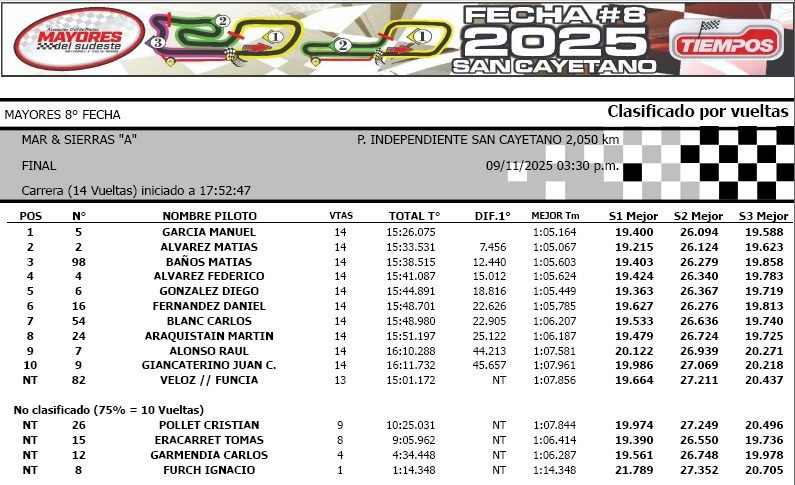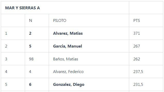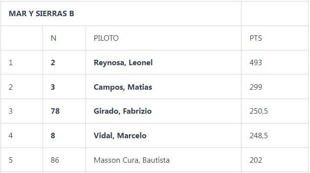 En Mar y Sierras A la lucha se centraba en el subcampeonato, y Manuel García se quedó con el “2” al ganar la final. El campeón anticipado Álvarez llegó como escolta y Matías Baños completó el podio, al igual que el trío de punta en el certamen. Federico Álvarez y Diego González completaron las cinco primeras posiciones, tanto en pista como en el torneo.