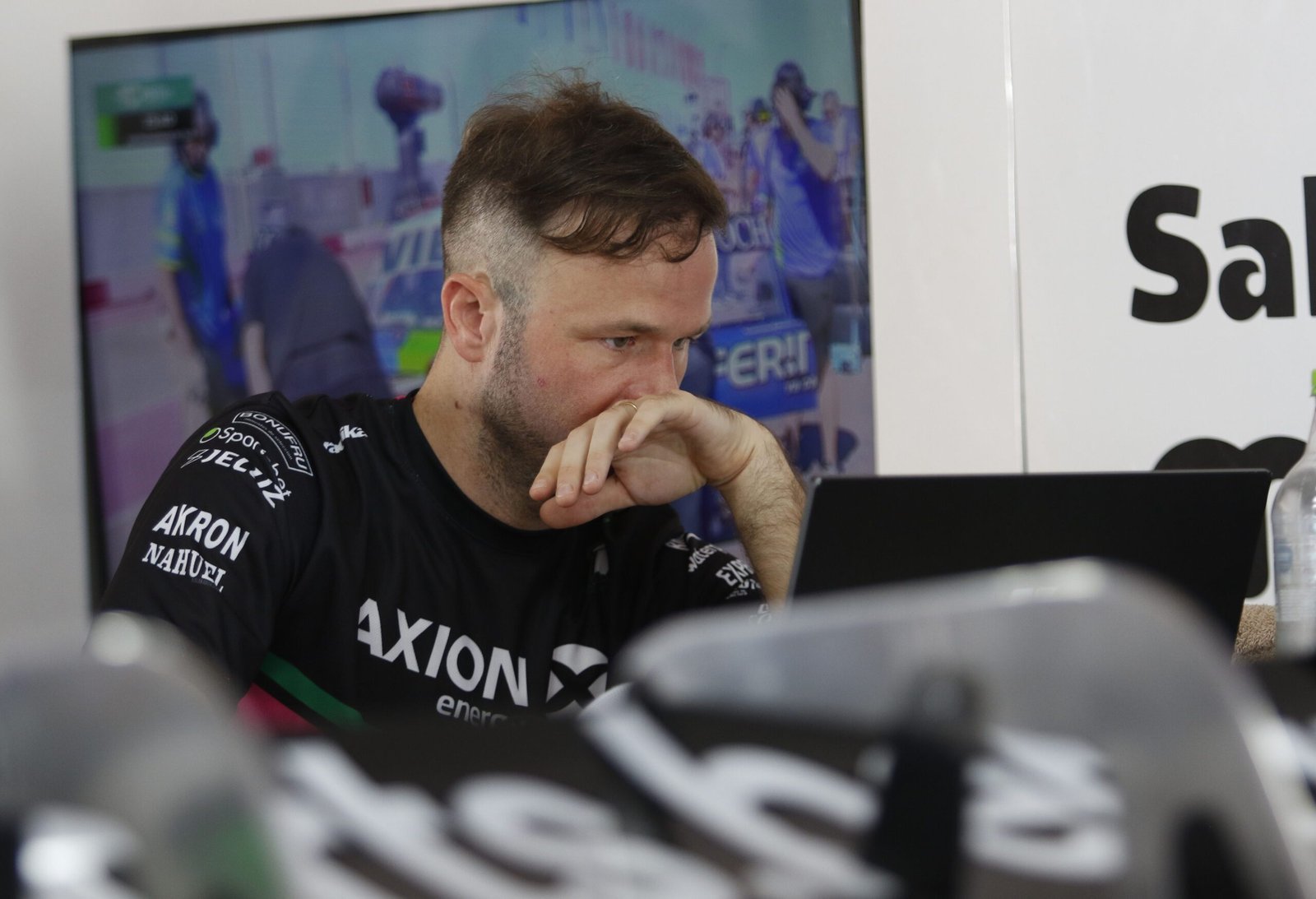 Agustín Canapino trabajando en los boxes