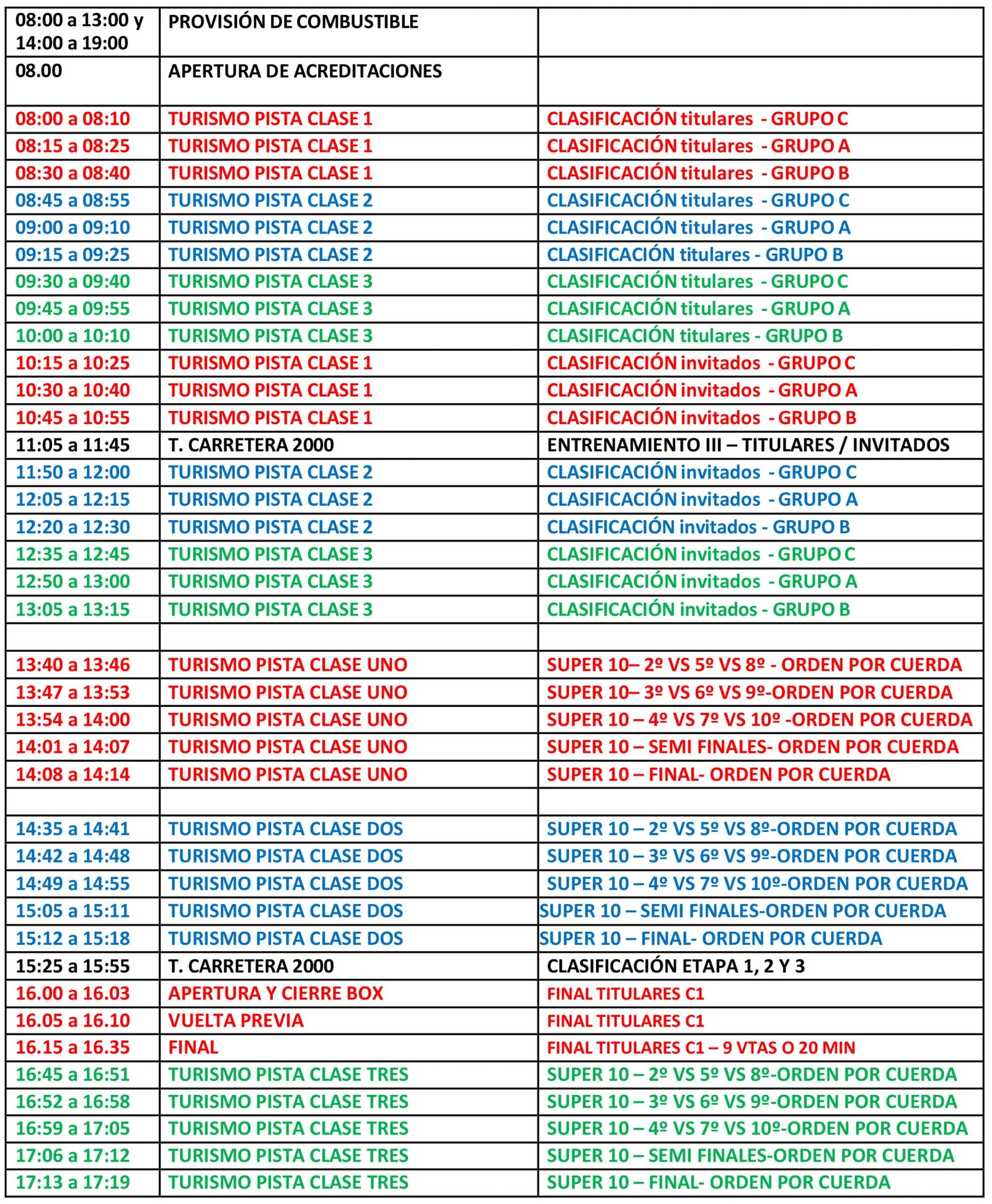 La acción comenzará a las 8 y finalizará pasadas las 18, con el Turismo Carretera 2000, que también será parte de la fiesta y también tendrá una fecha especial con pilotos invitados.