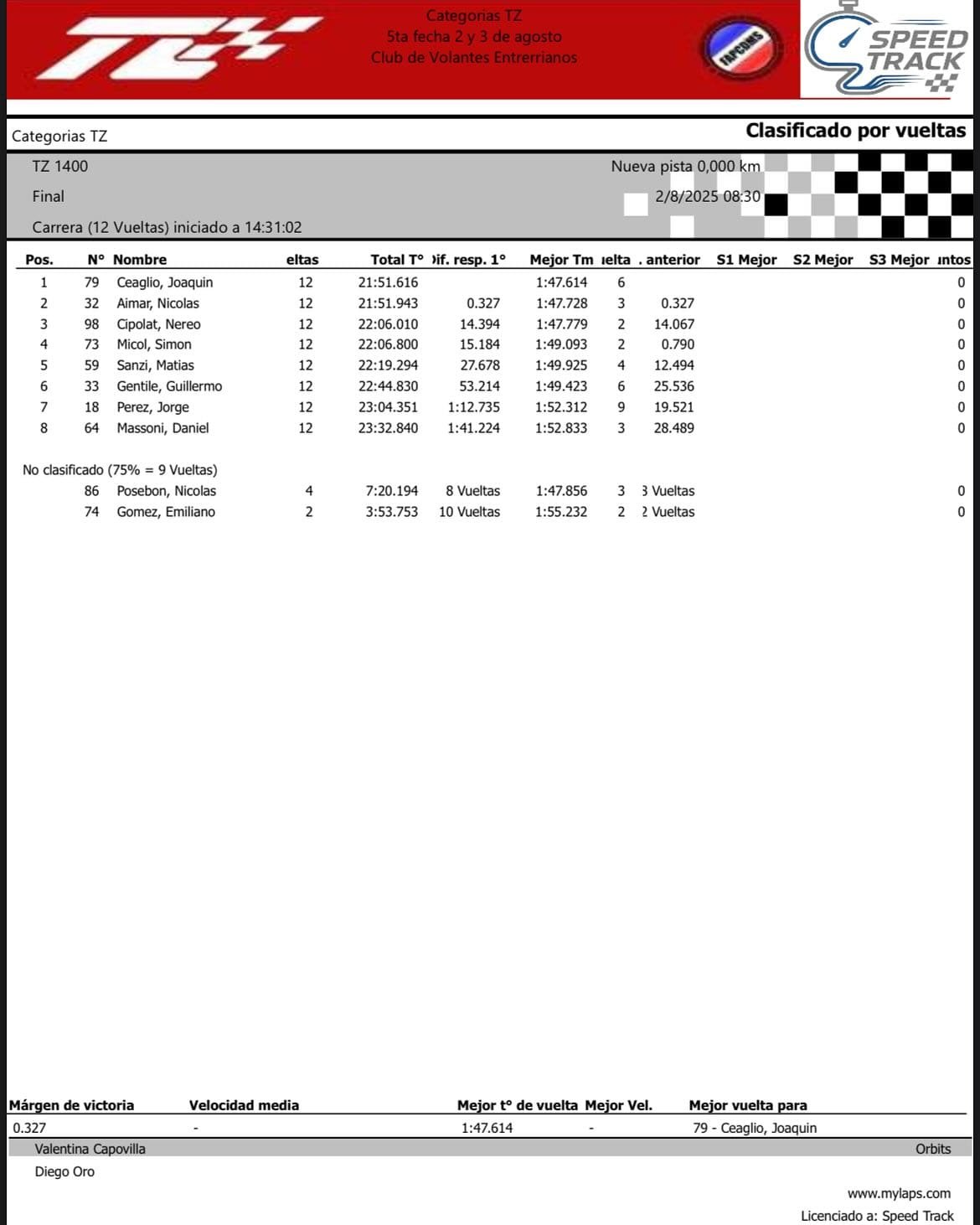 En una jornada fantástica, a pleno sol y con buena concurrencia de público, las Categorías TZ disputaron las finales de la 5ª fecha de la temporada en el autódromo “Ciudad de Paraná”.