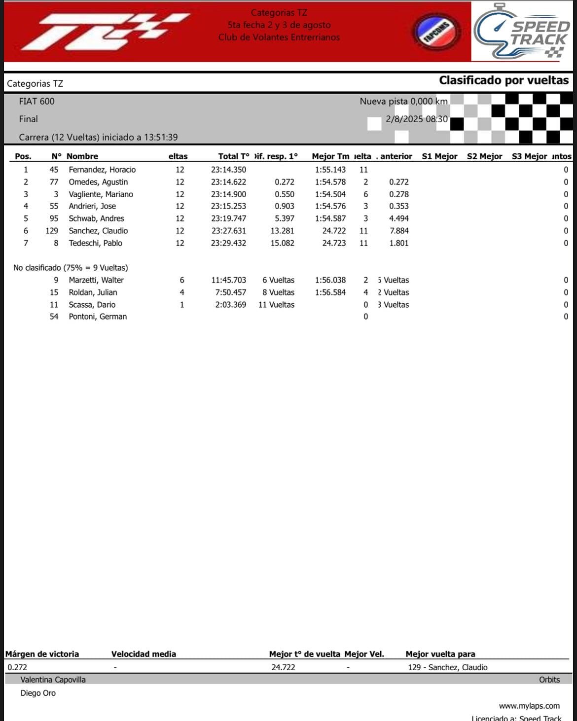 En la Fiat 600, Horacio Fernández fue el ganador y doblegó a Agustín Omedes por menos de tres décimas. Mariano Vagliente completó el podio a poco más de medio segundo.