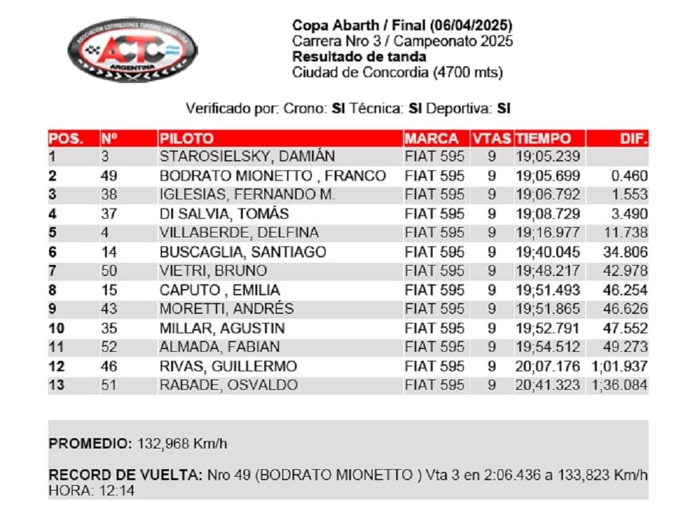 ¡Qué final se dio en la Copa Abarth en Concordia, tercera fecha del campeonato! Un podio muy peleado, lleno de emoción y talento en cada curva.