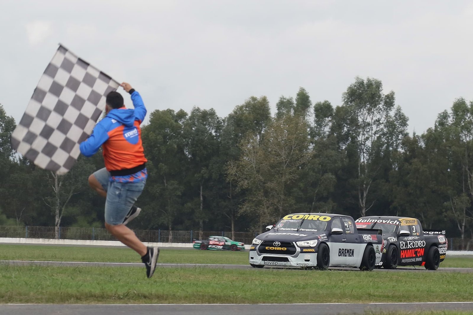 La carrera se corrió bajo una pertinaz llovizna que no dificultó el accionar de las Pick Up que, en su mayoría, estaban con gomas lisas. Jakos conservó la calma y soportó estoicamente la amenaza, que desde atrás, le imprimió durante varias vueltas el piloto Mariano Werner, que terminó segundo.