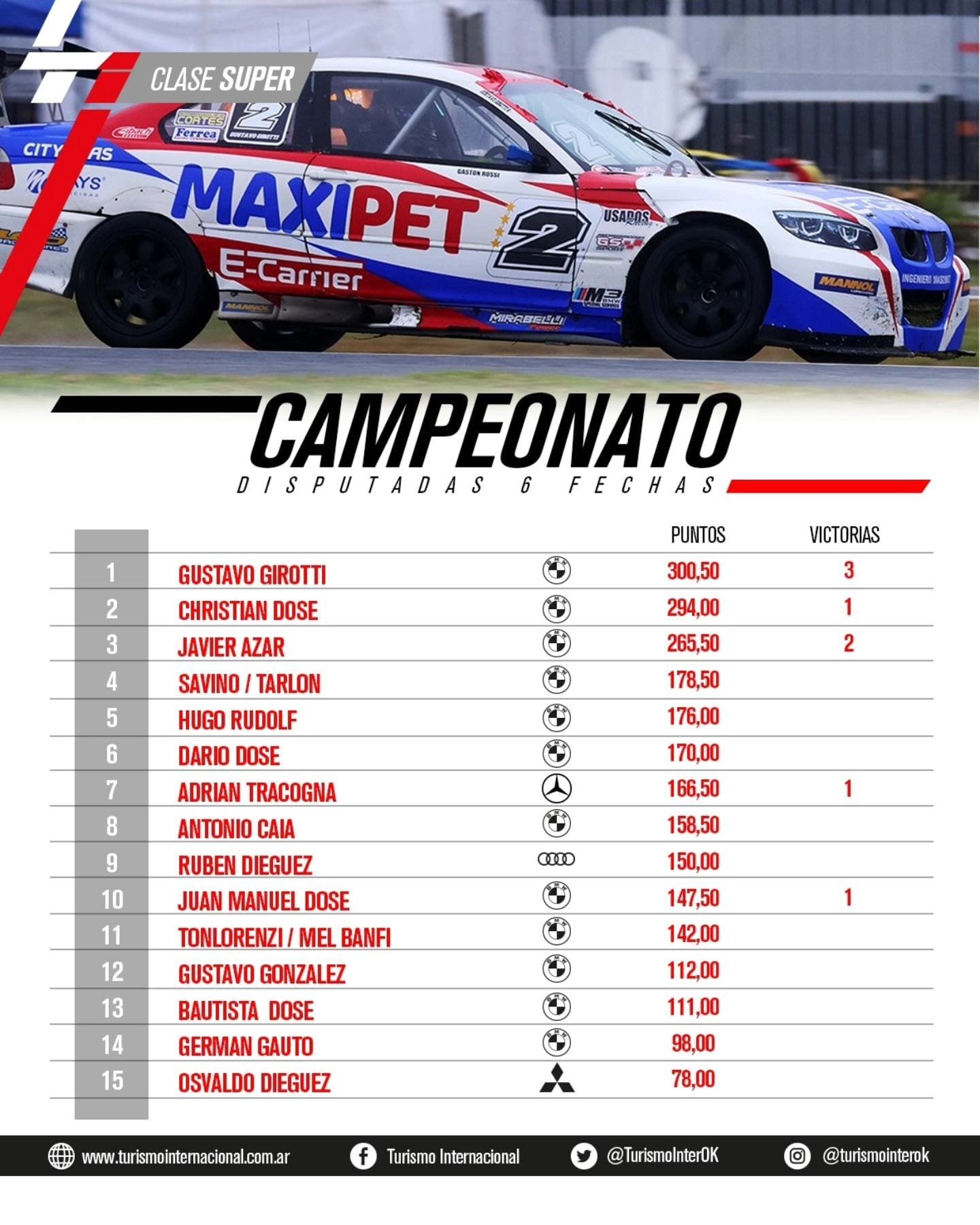 La condición de pista no cambió en ningún momento y desde el fondo se venían Diego Azar, sobre la unidad de su papá Javier, y Gastón Rossi con el auto de Gustavo Girotti, adelante Puerto recortaba distancias con el líder y daba cuenta del mismo promediando la competencia para dirigirse rumbo al triunfo con el BMW de color “lingote” que conduce habitualmente Christian Dose, posteriormente fue Rossi quien también dio cuenta de González.
