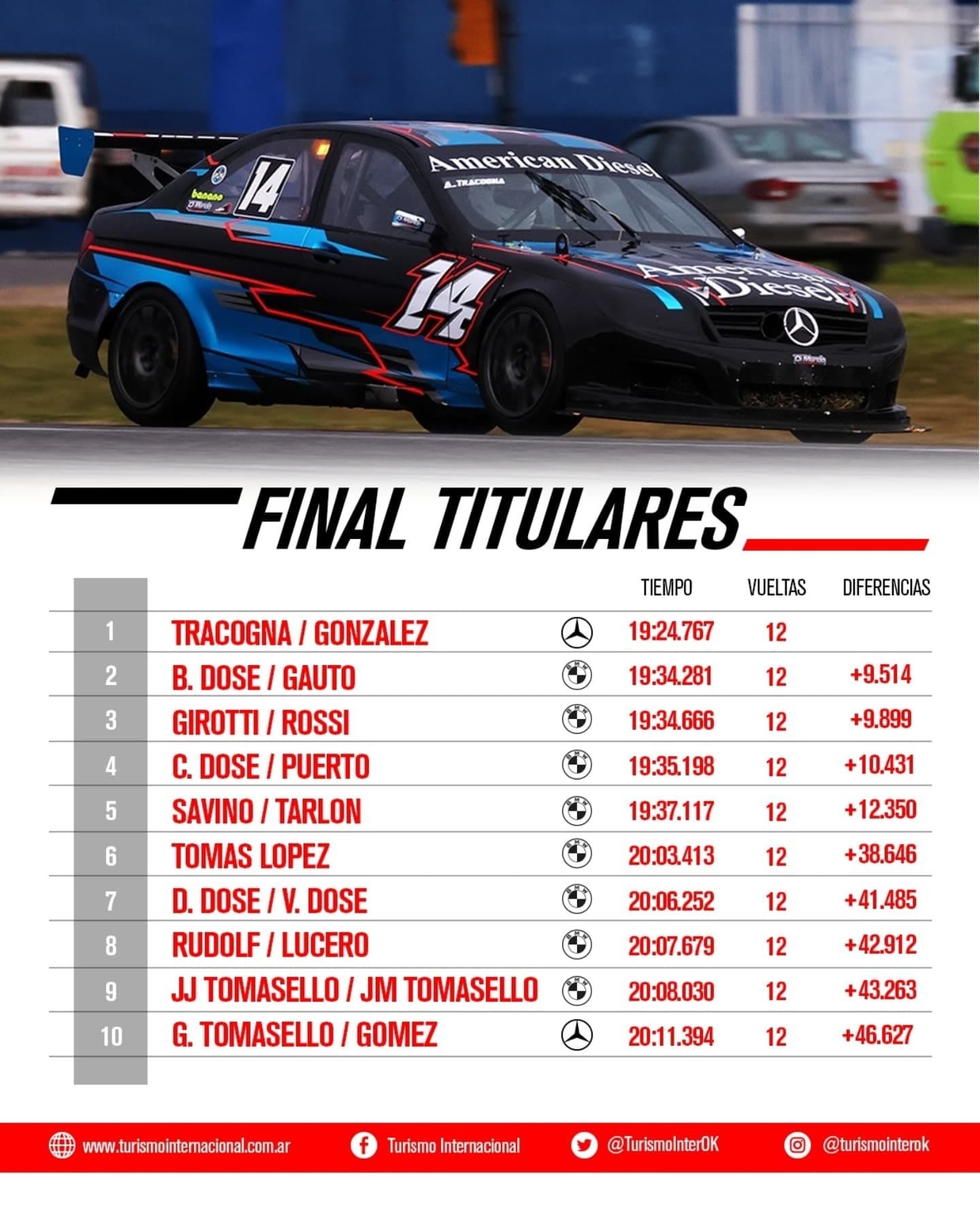 Finalmente, Tracogna pudo mantener y regular la distancia para volver a ganar por cuadragésima vez en la divisional, tras siete temporadas sin victorias (NdeR: último triunfo Concepción del Uruguay 2018) y también volver a darle un triunfo a Mercedes Benz en la divisional por más de veinte años (NdeR: último triunfo Autódromo 9 de Julio el 17 de julio de 2005. Victoria de Claudio Kohler con un Mercedes Benz 190 2.5).