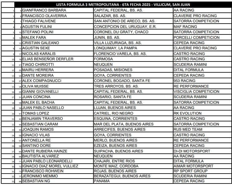 La Fórmula 3 Metropolitana llevará a cabo el sexto compromiso de la temporada en el autódromo Villicum San Juan, compartiendo escenario otra vez con el Turismo Carretera, por lo que será una fecha especial con puntaje y medio para las competencias y no se desarrollarán las series.