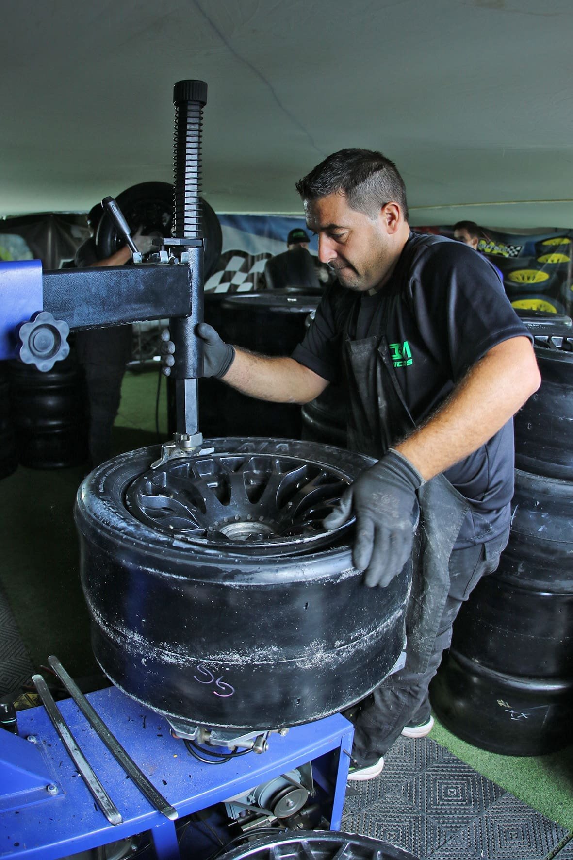 Es así como las seis o siete personas que trabajan en la gomería que se instala en cada autódromo tienen la responsabilidad de entregar cada rueda.