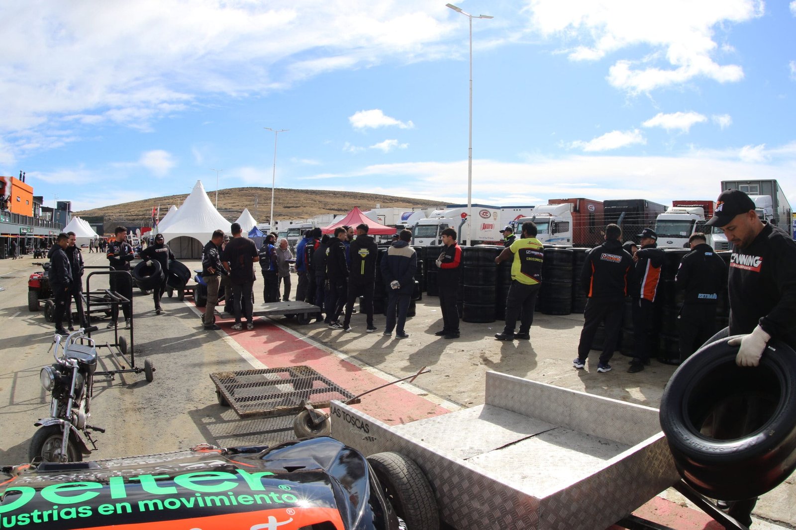 Durante los fines de semana de TC y otras categorías de la ACTC, un grupo de diez personas asisten a los equipos con los neumáticos de sus vehículos.