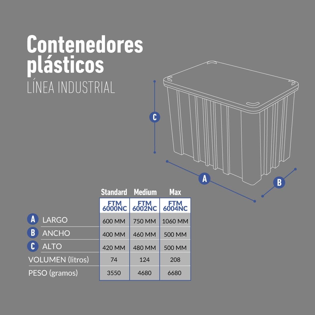 El tercer producto de la empresa FTM Línea Pesada son los contenedores plásticos, una opción ideal para galpones, camiones, camionetas, hogar, playa y donde el cliente desee.
