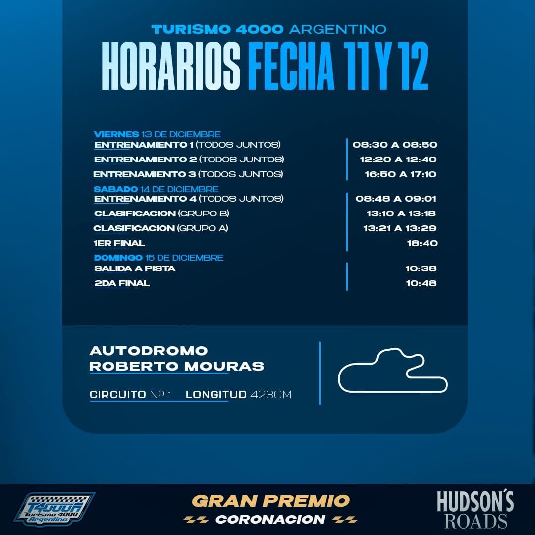 Este viernes, en el autódromo de La Plata, se pondrán en marcha los entrenamientos para las 11ª y 12ª fechas del certamen 2024 del Turismo 4000 Argentino.