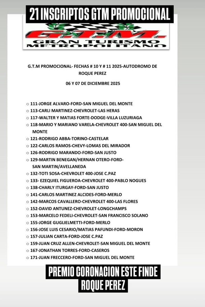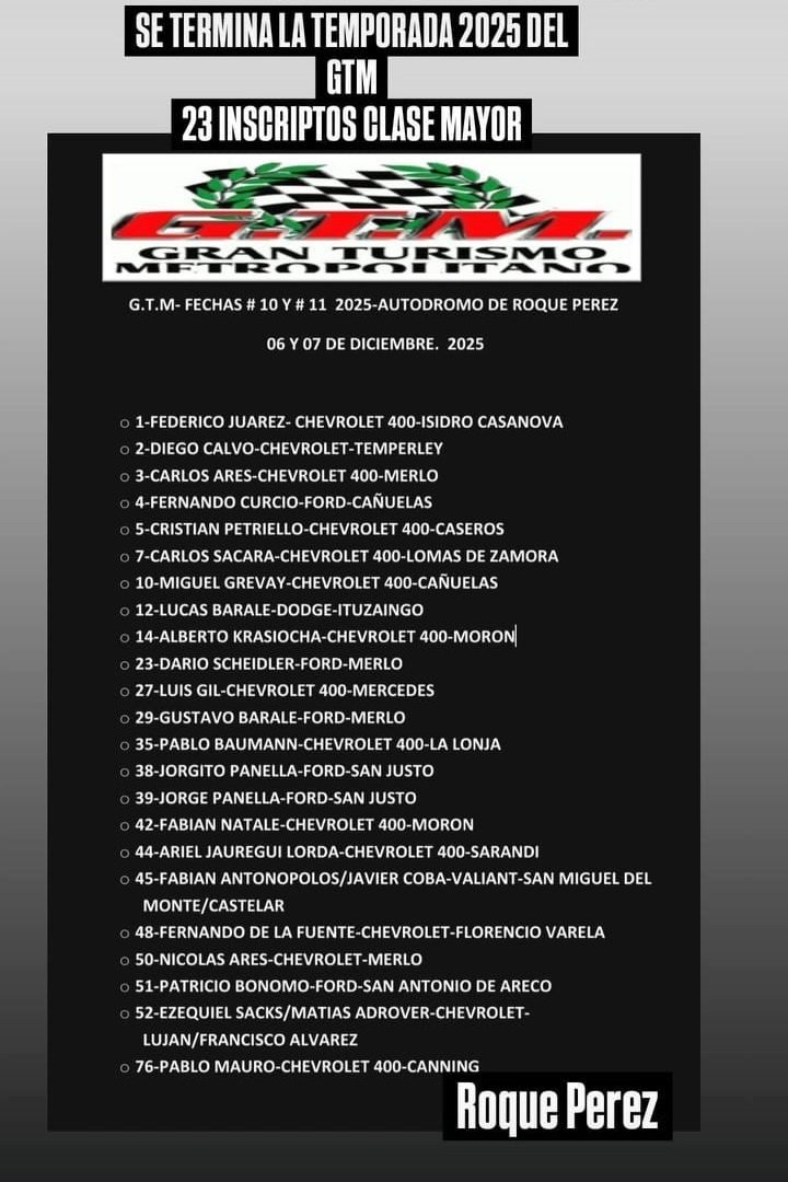 En definitiva, el asfalto de Roque Pérez dará la última palabra en las dos clases del GTM, que cerrará una temporada intensa y que promete una definición cerrada. Porque candidatos sobran.