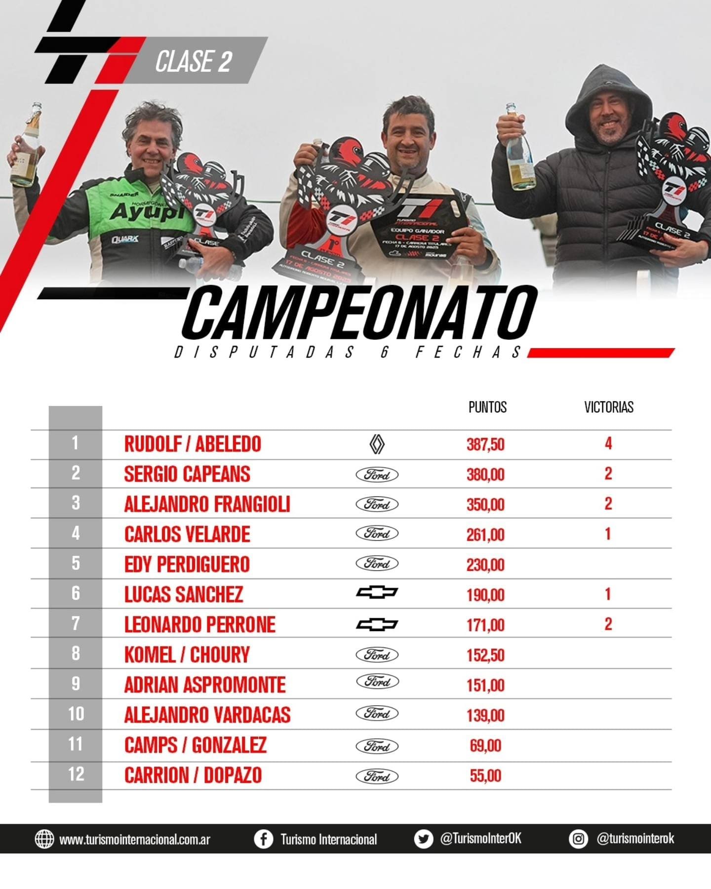 El piloto del equipo Bizzarini Turbos fue escoltado por “Aspro”, el canandiense sumó su segundo podio en la divisional y agiganta su protagonismo, completó el podio Alejandro Frangioli quien continúa de buena racha y sigue sumando fuerte para el campeonato. Cuarto Alberto Choury en su mejor trabajo personal, quinto quien llegó a esta instancia como líder del certamen Sergio Capeans, sexto Edy Perdiguero, séptimo el debutante Augusto Caporelli completando el total de los arribados a la bandera a cuadros.