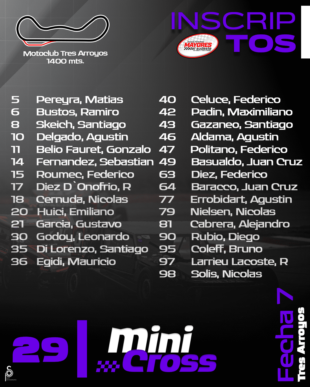 Desde las 13 en adelante con orden Mar y Sierras A, Minicross, Mar y Sierras B y TC del 40.