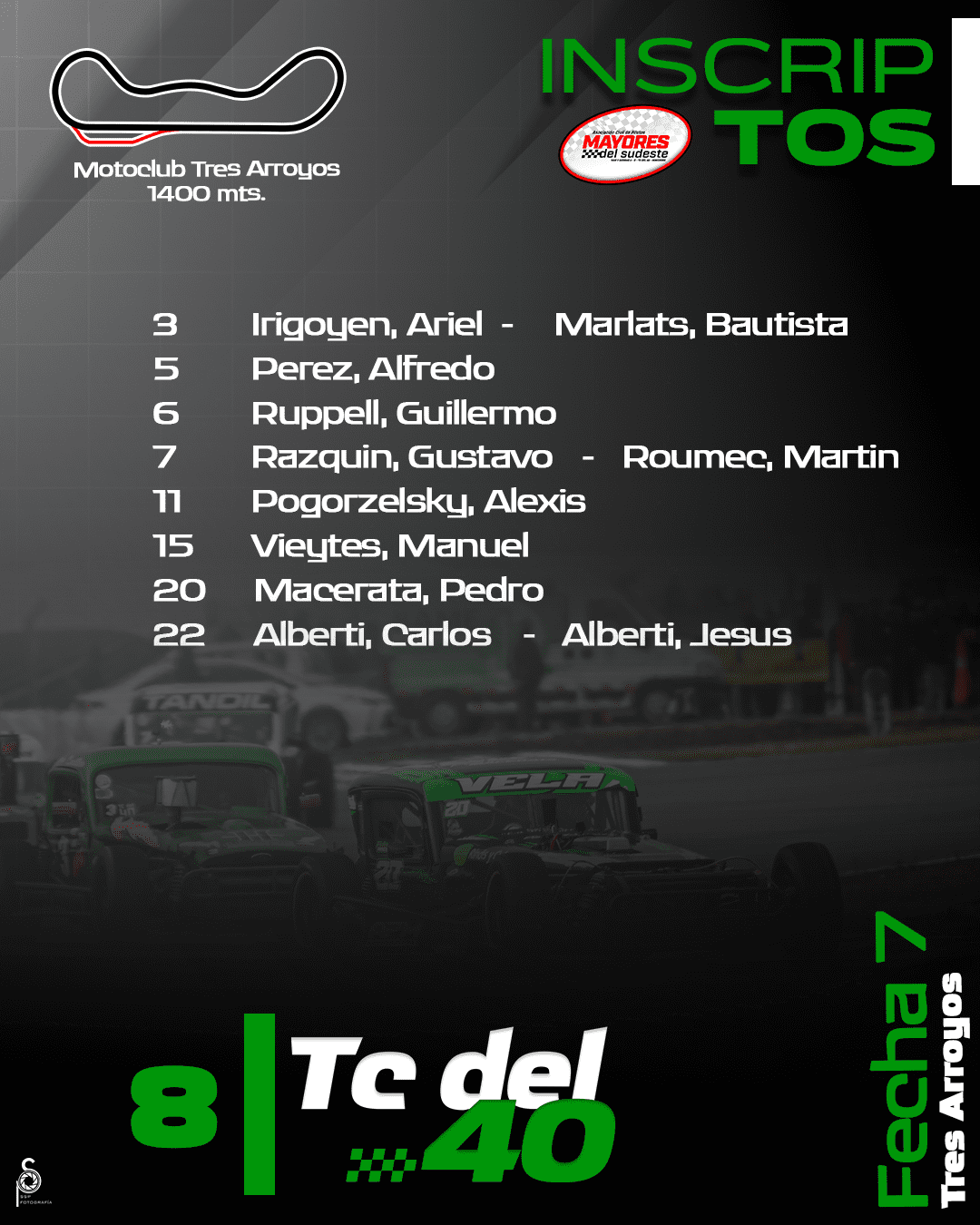 Por último, el TC del 40 presentará ocho autos y Pedro Macerata tratará de mantenerse arriba con 212, seguido por Ariel Irigoyen con 199 y Guillermo Ruppell con 196.