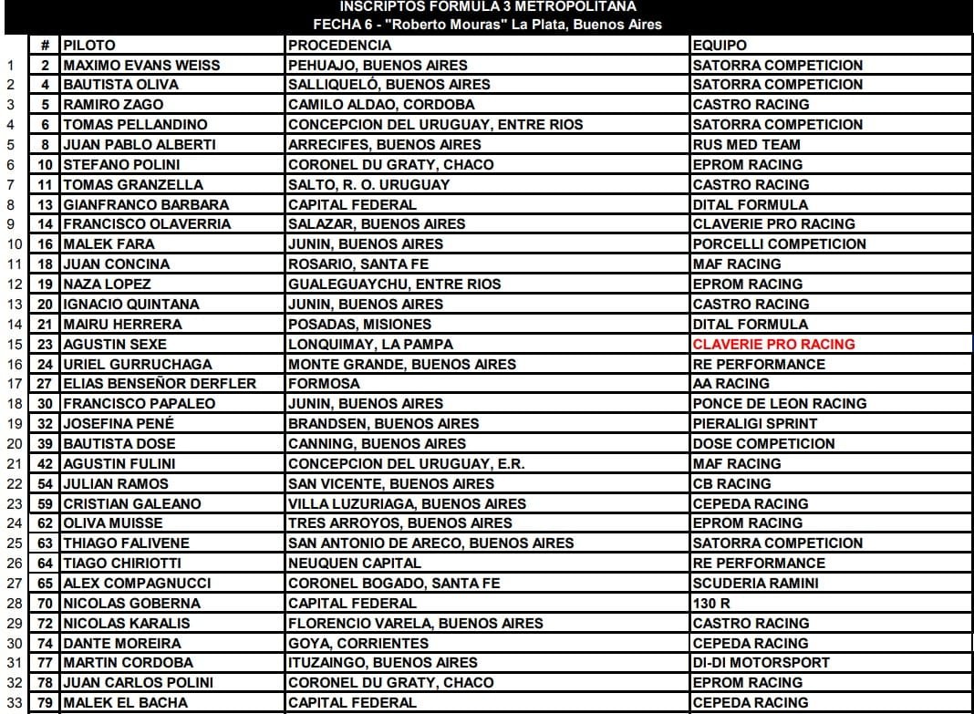Para esta cita habrá una sola novedad y es el cambio de equipo de Agustín Sexe, quien se sumará al Claverie Pro Racing.