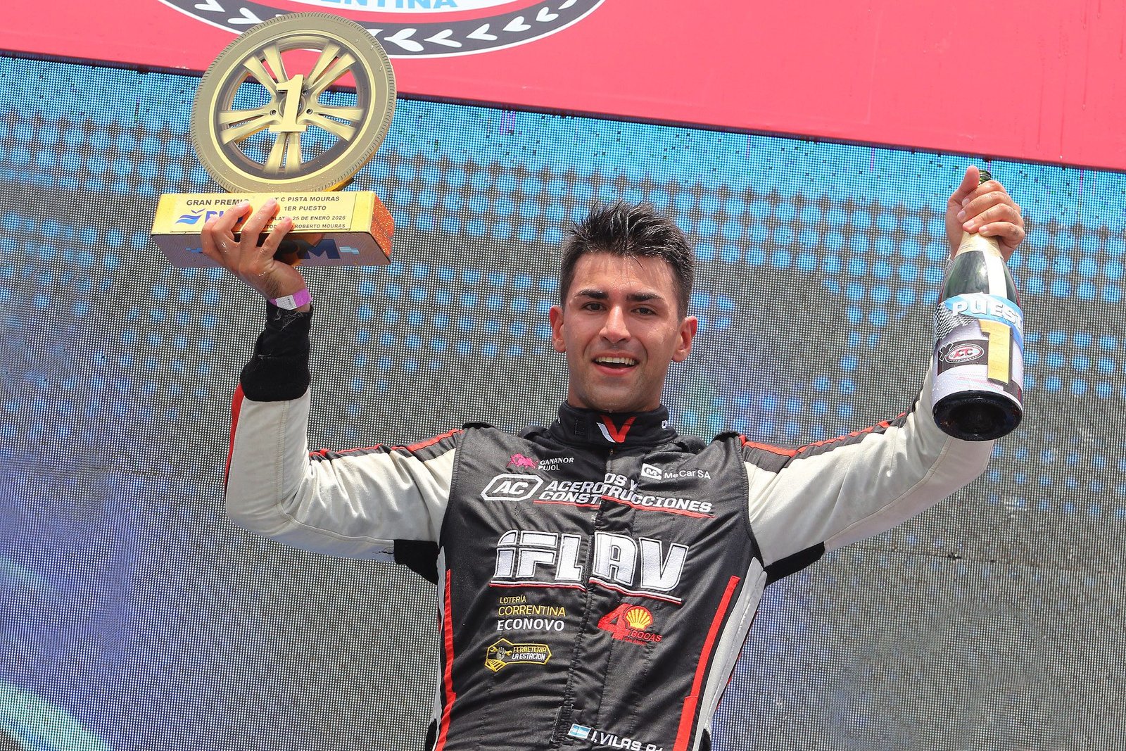 “Largamos muy bien, teníamos un gran balance del auto, me di cuenta en la segunda curva. Después decidimos ir de menos a más tratando de que los punteros no se escapen, de mitad de carrera en adelante decidimos atacar, teníamos buen ritmo. Nos ayudó que el puntero se empezó a quedar y a partir de ahí fui más tranquilo, tratando de cuidar el neumático, hacia mucho alcor y faltaban varias vueltas así que no cometimos ningún error y eso nos permitió llevarnos el triunfo”, sintetizó el piloto correntino.