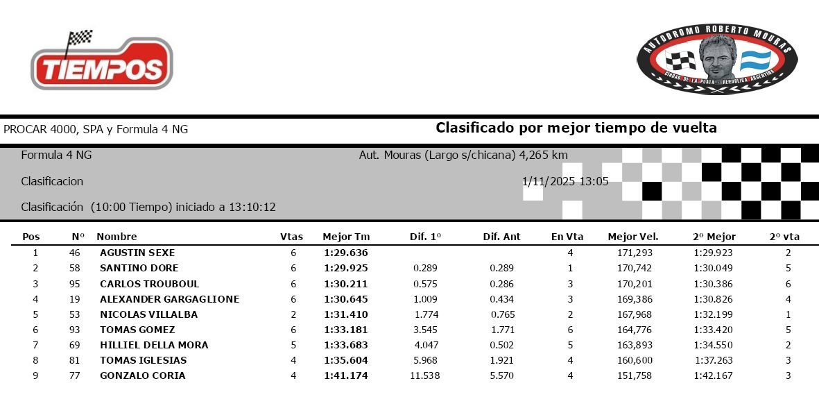 Agustín Sexe cerró un sábado perfecto y se quedó con la clasificación de la Fórmula 4 Nueva Generación, que marcó el cierre de la actividad de la 7ª fecha en el “Mouras” de La Plata.