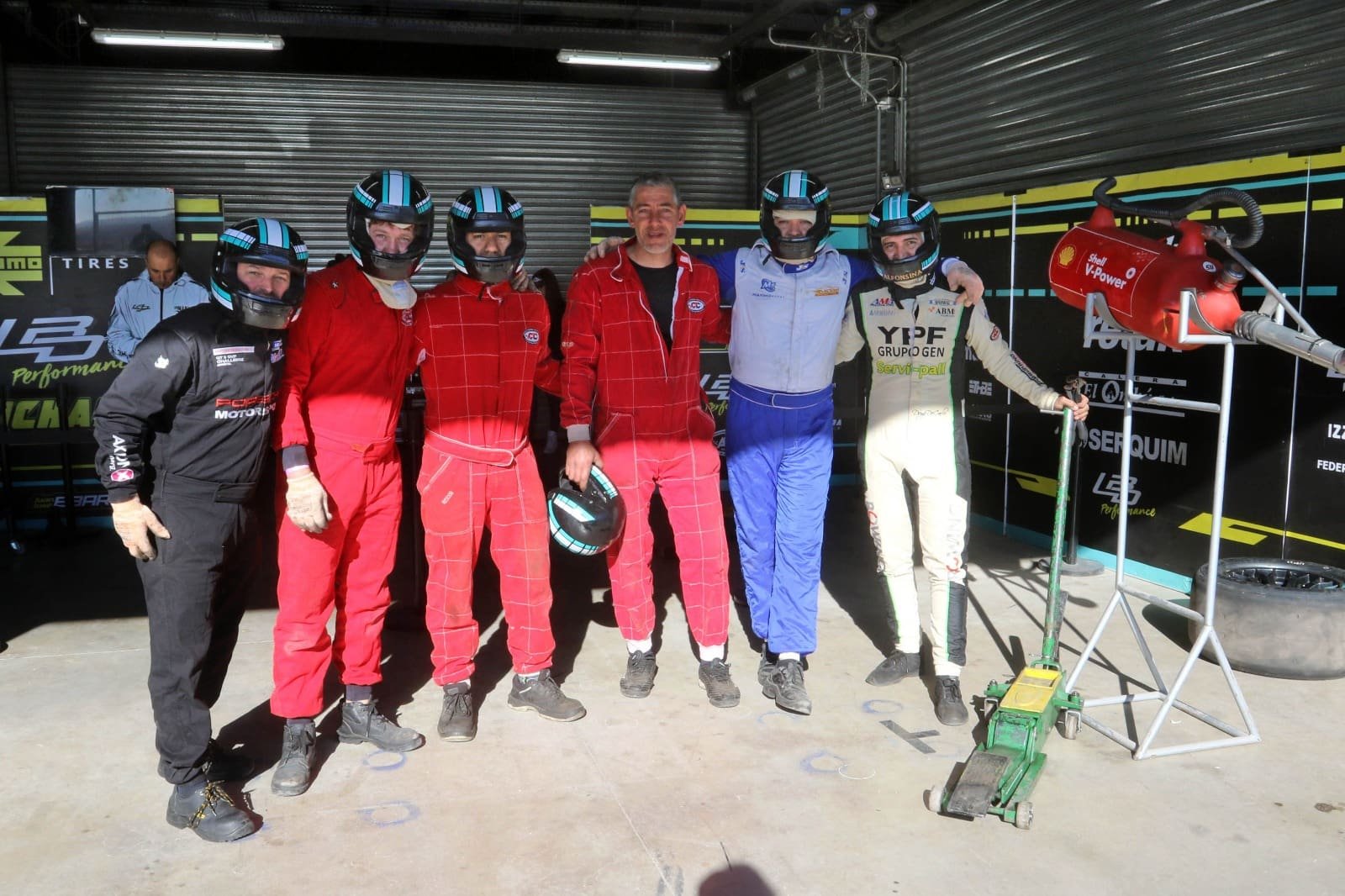 Guillermo Galione, Luciano de Sa, Fernando Ruiz, Fernando Ginto, Maximiliano Alegre y Brian Constantino, tal como están en la foto de izquierda a derecha, tardaron solo 53s926 para devolver al Camaro a pista.