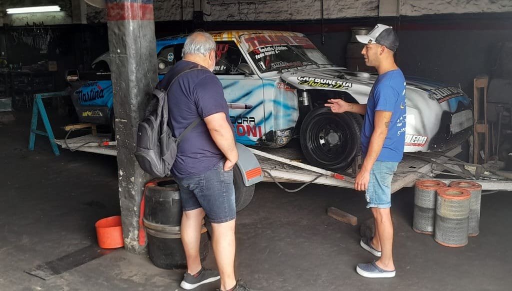 El tránsito es casi un pandemónium; autos en doble y hasta triple fila dejan poco espacio para el paso. Se escuchan las bocinas, los saludos a la distancia, mientras en el taller de mecánica pesada descansa el “Exocet” celeste y blanco, según le puso un amigo, que dominó durante toda una temporada, la segunda consecutiva en realidad, del Gran Turismo Metropolitano (GTM).